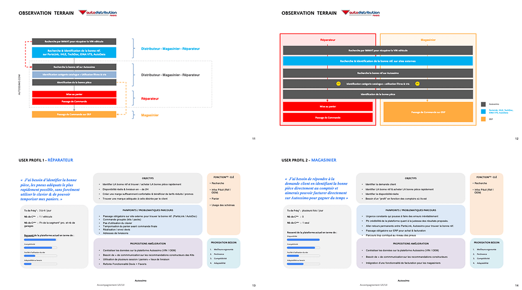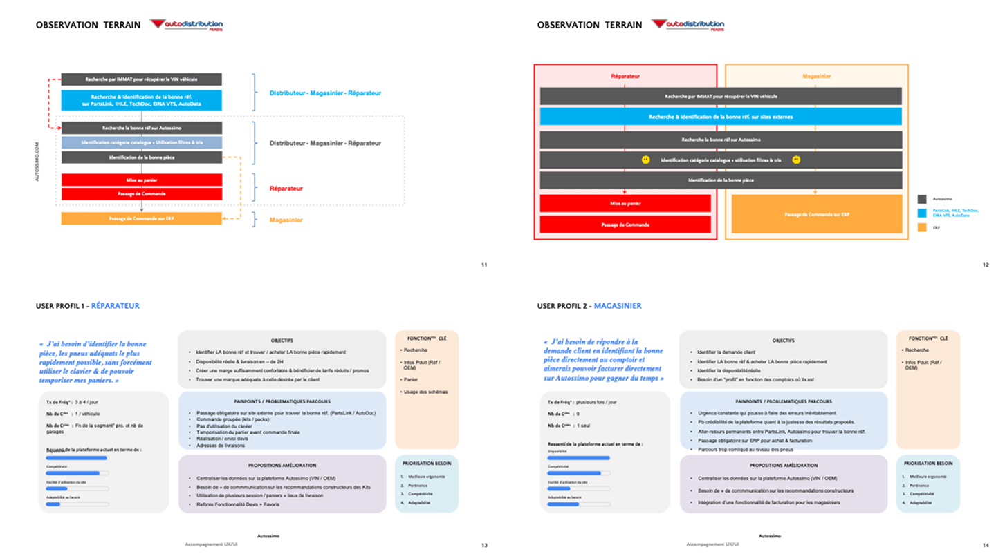 Ces observations ont nourri la création de User Journeys et Personae représentatifs, servant de base à la priorisation des parcours critiques à refondre.