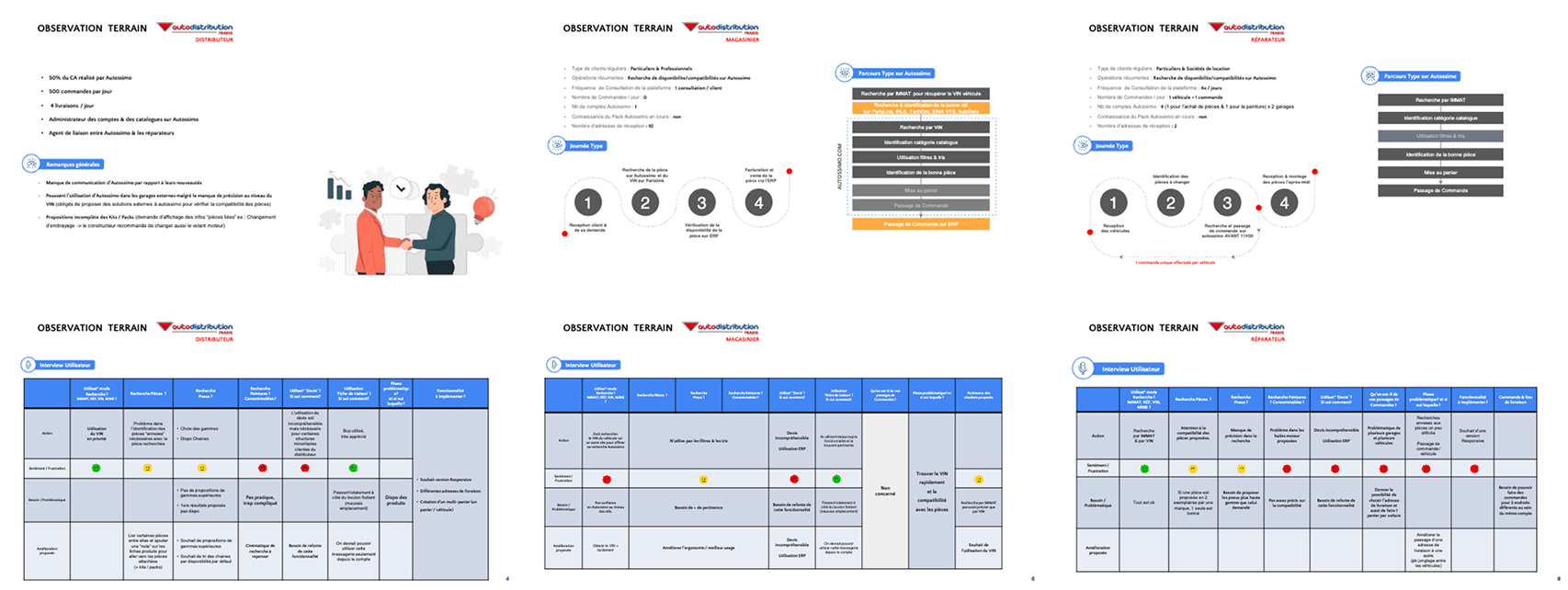 Après la phase d’audit, nous avons conduit une série de sessions de shadowing et d’entretiens utilisateurs auprès de garages de différentes tailles (petits, moyens, grands comptes).